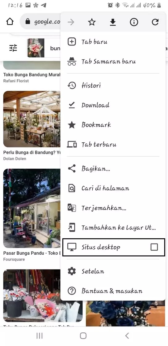 • Pada pojok kanan atas, klik logo tiga titik, lalu pilih “Setelan”.